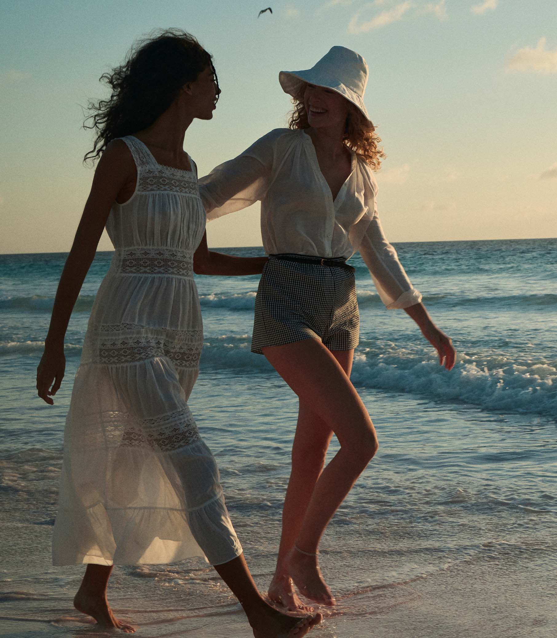 In crisp, lightweight cotton seersucker, the Larena Short—a favorite of our co-founder Katherine—features an ultra-high waist, an A-line silhouette, and contrast elastic scallop edge lace.
